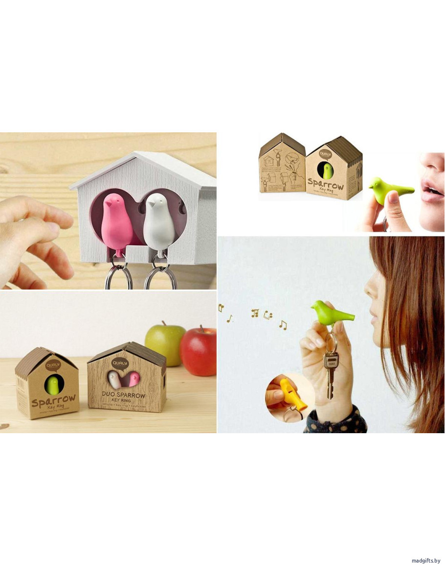 Держатель+брелок для ключей двойной sparrow белый-оранж (Детали интерьера) - дизайнерских и оригинальных подарков www.madgifts.by