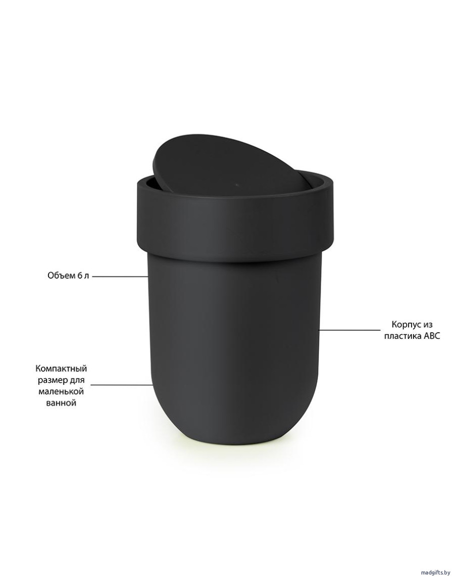 Контейнер мусорный touch с крышкой черный (Ванная комната) - дизайнерских и оригинальных подарков www.madgifts.by