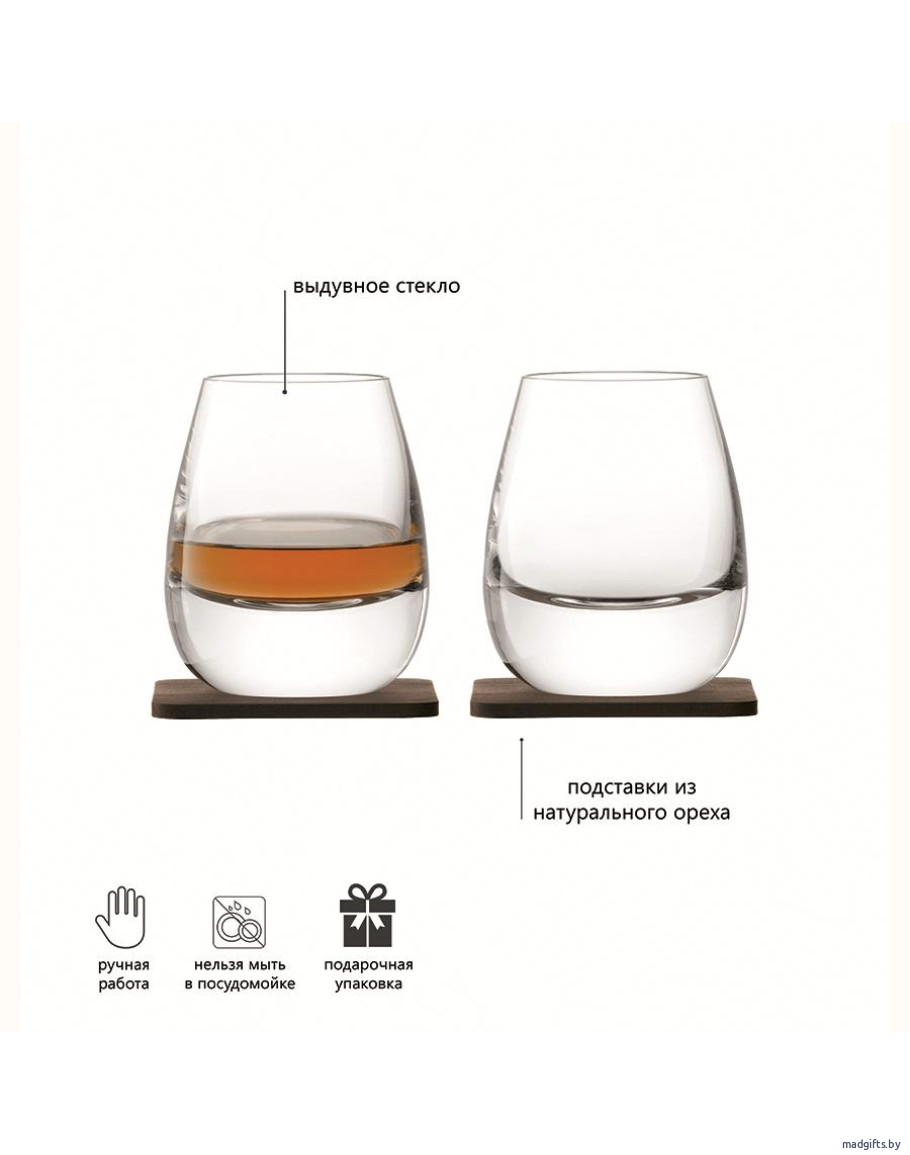Набор из 2 стаканов islay whisky с деревянными подставками 250 мл (Вино и напитки) - дизайнерских и оригинальных подарков www.madgifts.by