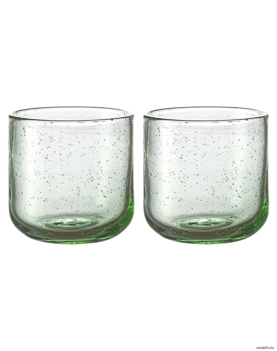 Материалы: выдувное стекло. Размеры: диаметр – 8,1 см, ширина основания – 4,5 см, высота – 8,1 см. Объем: 310 мл. Цвет: зеленые. Количество в наборе: 2 шт.