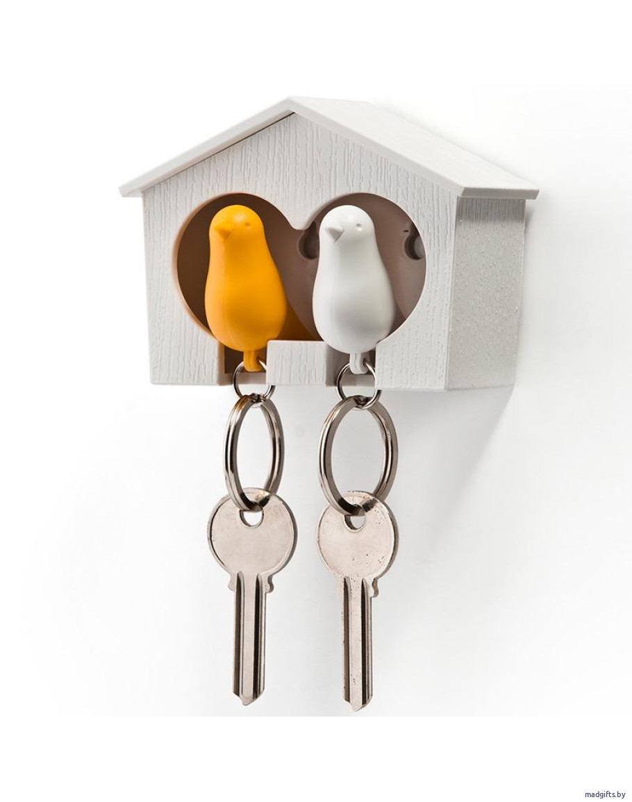 Держатель+брелок для ключей двойной sparrow белый-желтый (Детали интерьера) - дизайнерских и оригинальных подарков www.madgifts.by
