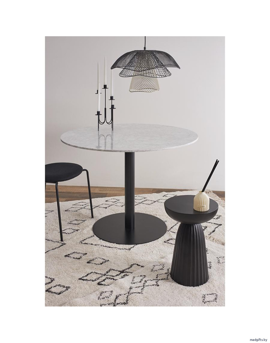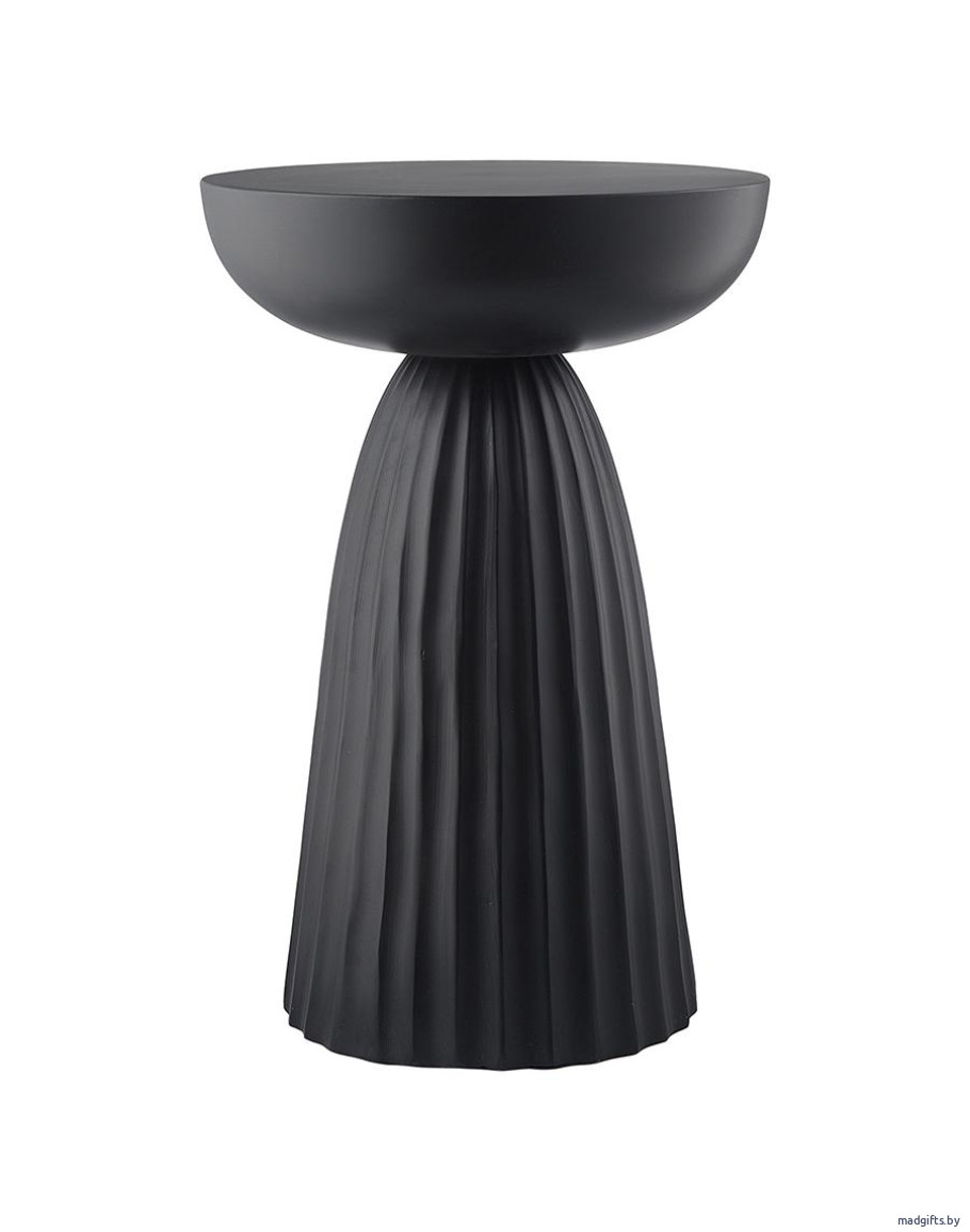 Столик приставной Ujev привлекает внимание необычным дизайном, благодаря чему может стать акцентным элементом в интерьере. Мебель имеет столешницу из алюминия круглой формы диаметром 30,5 см. Это позволяет размещать ее в любом уголке комнаты, не загромождая пространство. Прочное железное основание, напоминающее по форме колонну, делает дизайн интересным, а также обеспечивает конструкции надежность и долговечность.