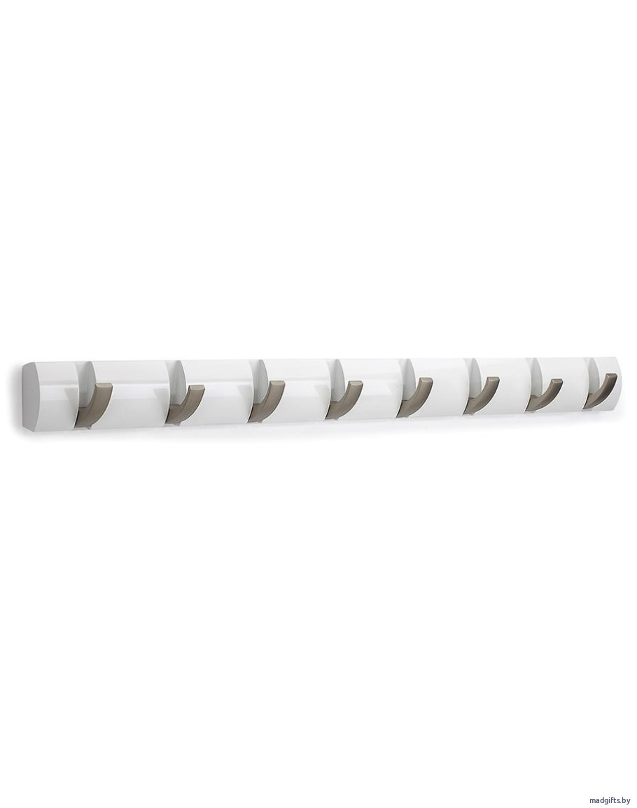 Вешалка настенная горизонтальная flip 8 крючков белая (Вешалки) - дизайнерских и оригинальных подарков www.madgifts.by