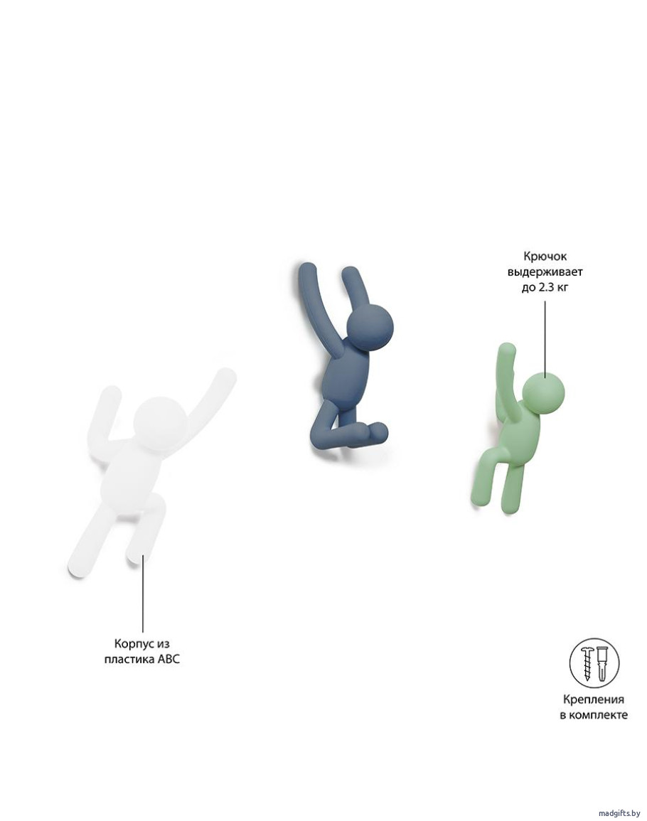 Вешалки-крючки buddy 3 шт. разноцветные мятные (Вешалки) - дизайнерских и оригинальных подарков www.madgifts.by