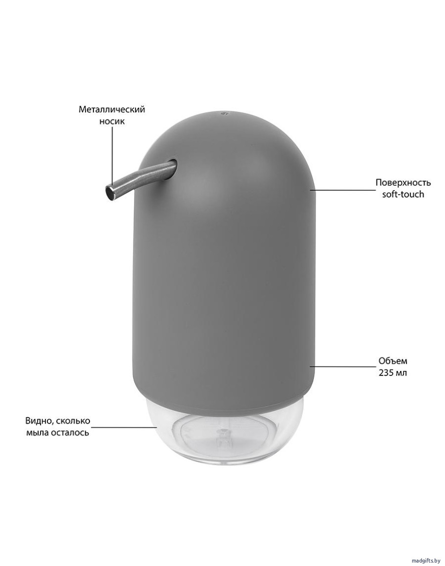 Диспенсер для мыла touch серый (Ванная комната) - дизайнерских и оригинальных подарков www.madgifts.by