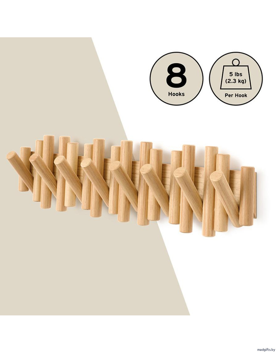 - Каждый крючок выдерживает нагрузку до 2,3 кг, обеспечивая практичное активное использование в различных помещениях.